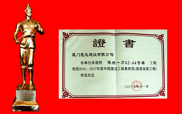 魯班獎(jiǎng)自1987年設(shè)立以來(lái),歷經(jīng)30年的璀璨光輝,是我國(guó)建設(shè)工程質(zhì)量最高獎(jiǎng),代表了當(dāng)代我國(guó)工程建設(shè)質(zhì)量的最高水平,素有建筑界“奧斯卡獎(jiǎng)”之稱,是精品工程和企業(yè)品牌的重要標(biāo)志。適逢魯班獎(jiǎng)創(chuàng)立30周年之際,我司承建的錦繡一方62~64號(hào)樓工程再獲此殊榮,是對(duì)“精益求精、追求卓越”的魯班精神的****詮釋,也是加強(qiáng)質(zhì)量管理、提高工程質(zhì)量、創(chuàng)立企業(yè)品牌的重要體現(xiàn),更是高標(biāo)準(zhǔn)執(zhí)行工程建設(shè)標(biāo)準(zhǔn)規(guī)范和實(shí)施品牌戰(zhàn)略的重大成果,再次向業(yè)界展示了“廈門思總”的企業(yè)品牌形象,展現(xiàn)了“思總建設(shè)”的雄厚實(shí)力,是企業(yè)品牌建設(shè)的又一里程碑。我們將認(rèn)真貫徹落實(shí)黨的十九大精神,不忘初心,砥礪奮進(jìn),不斷追求更加卓越的未來(lái)!